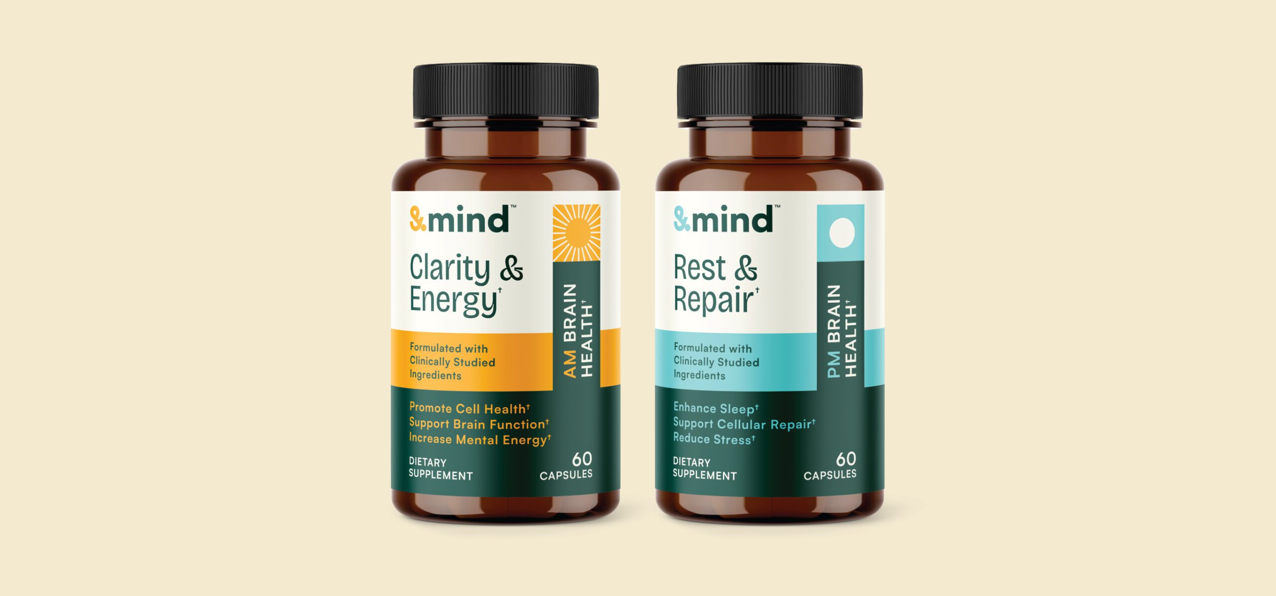 With a clearly defined positioning and audience, MarketPlace initiated a thoughtful supplement naming process, leading to the creation of &Mind, a name grounded in clarity, intention, and meaning. We started by exploring hundreds of creative directions and ‘brandcrumbs,’ eventually narrowing the possibilities down to the most impactful options. By vetting our top choices for everything from trademark availability to how they sound when spoken aloud, we landed on a solution that is as strategically sound as it is memorable.